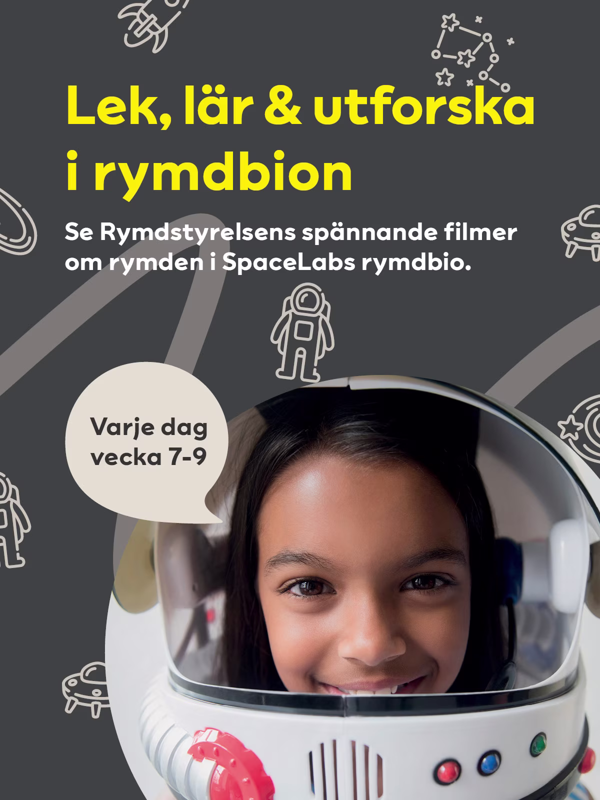 Se Rymdstyrelsens spännande filmer om rymden i SpaceLabs rymdbio, varje dag mellan den 12 feb - 3 mars.